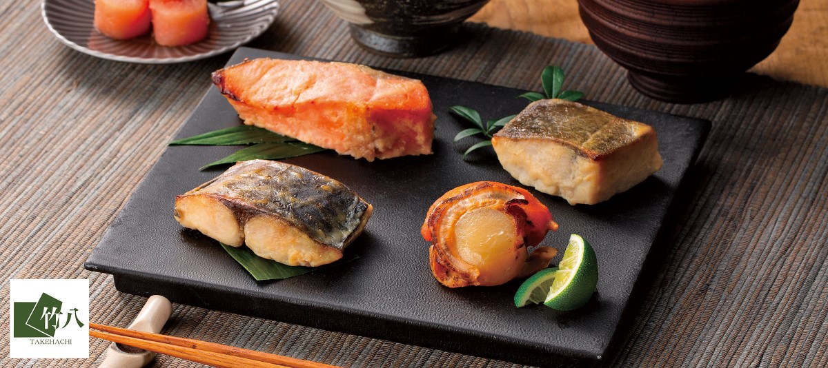 竹八伝統のあぶり漬を贅沢に4種お届け。種子島産粗糖と五島灘の塩が引き出す、素材の旨味。温めるだけで焦がさず、ふっくら。