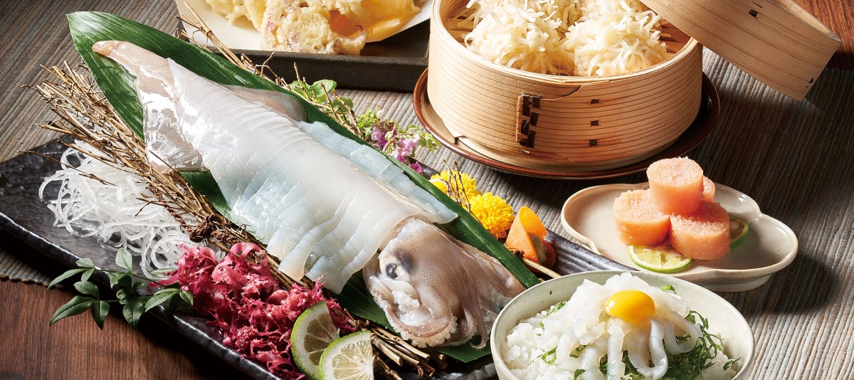 ①いかの活き造りを鮮度そのままに贅沢にお届け