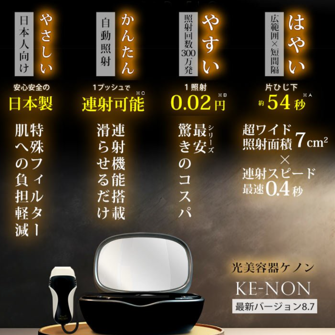 以上のように、ケノン脱毛器にはいくつかのデメリットがありますが、これは全ての脱毛器に言えることで、全てにおいて対処方法があり、効果的に使用することができます。